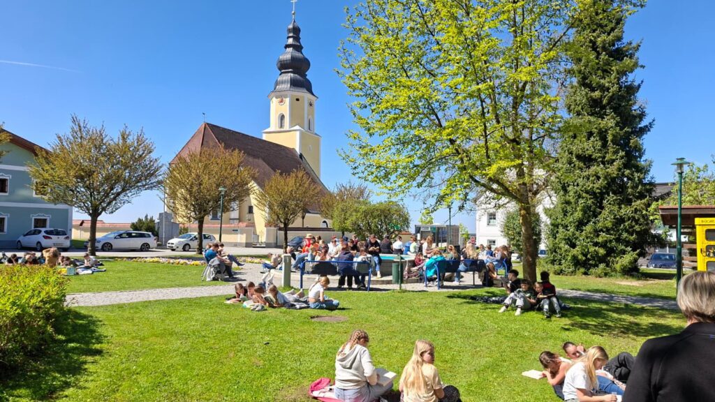 Zum internationalen Tag des Buches und zur Eröffnung einer Bücherbox auf dem Gemeindeplatz wurde von den Schulen des Ortes ein Leseflashmob abgehalten.